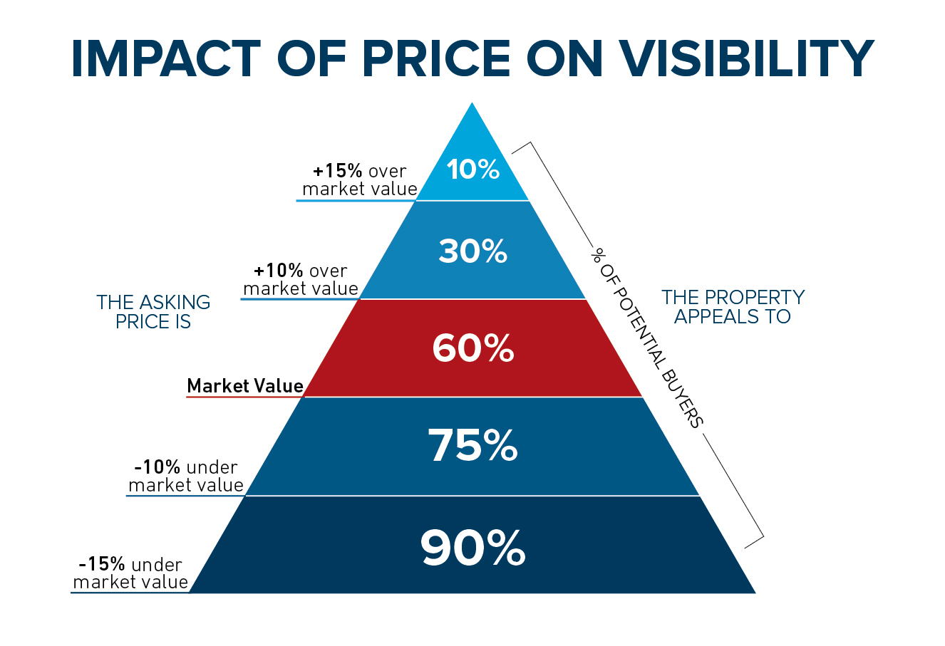 Many Views Leads to Offers. When buyers are considering homes, they often look within a price range suitable to them. If your home is listed at more than 10% above its fair market value, the number of potential buyers decreases quickly because they will look at or below their price range.